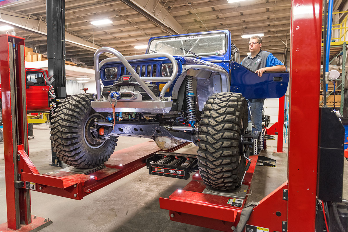 Hunter's industry-leading alignment technology on our four-post lift rack! Complete with Fully Integrated Alignment capabilities!